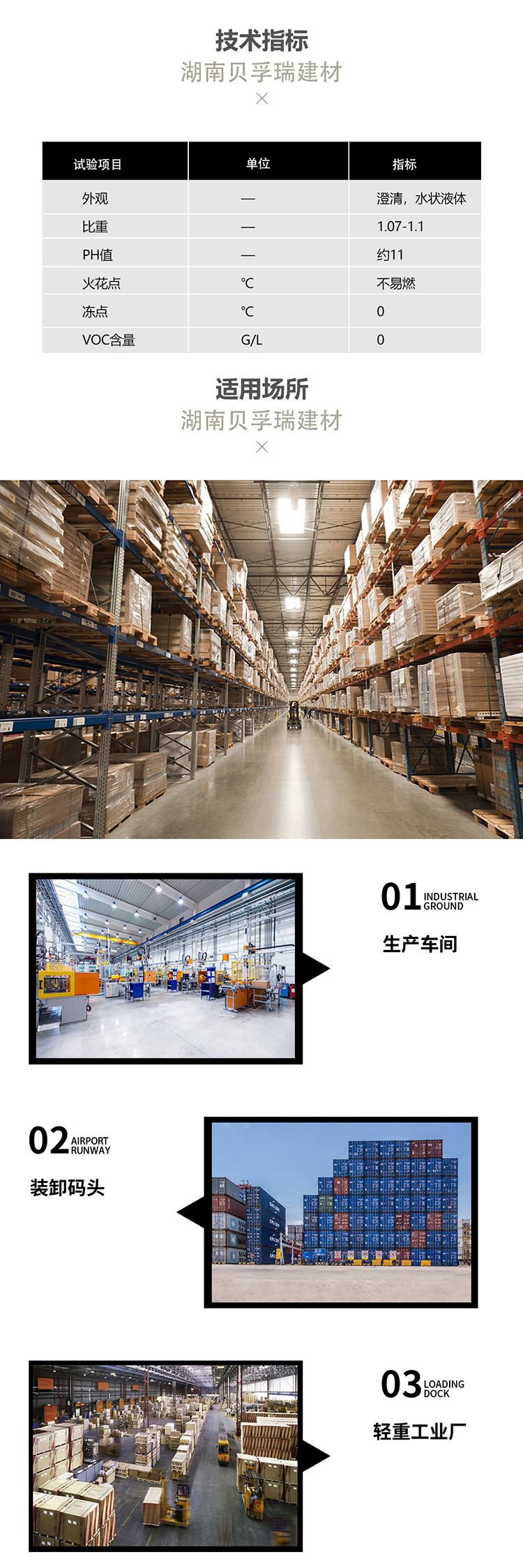 工業地坪、車間地坪、超市地坪、混凝土停車場、混凝土高速公路、機場跑道、混凝土橋梁、混凝土碼頭、混凝土墻面、體育場所、所有以混凝土或水泥砂漿為基層的場所。